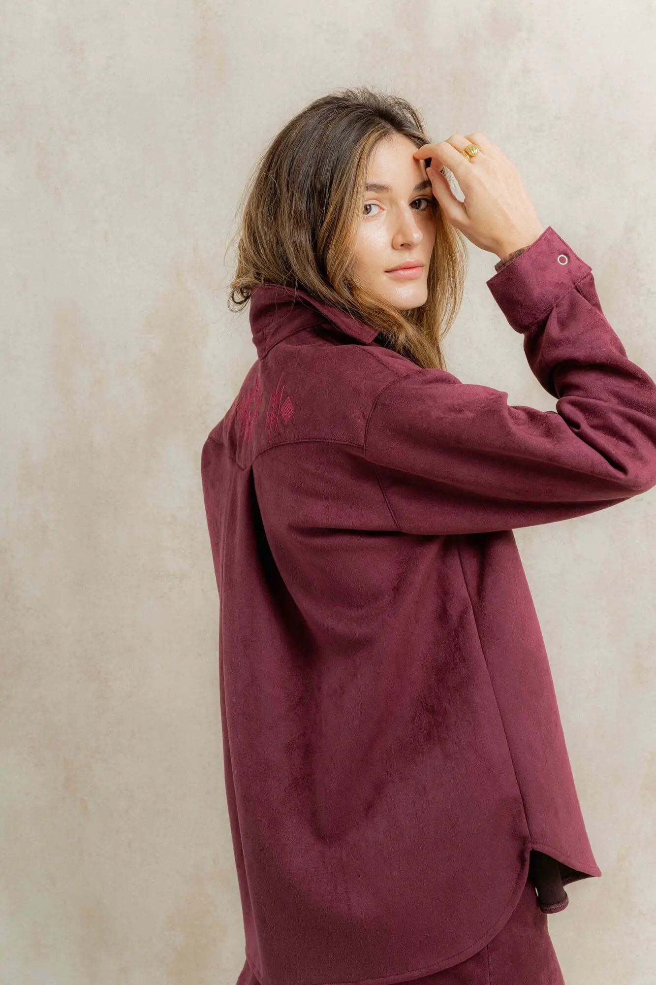 Camisa de corte estilo Western. Confeccionada en suede tipo gamuza con bordado en espalda. Es un modelo holgado, que se puede usar tanto como camisa o como sobrecamisa abierta encima de otras prendas. Forma parte de nuestra cápsula FAR WEST, y es una joyita de la colección, hicimos pocas para mantener la exclusividad.