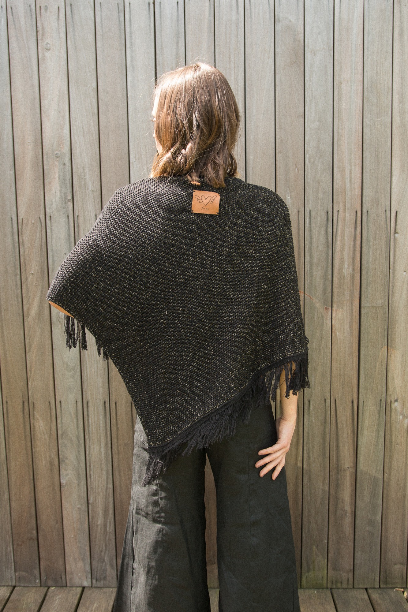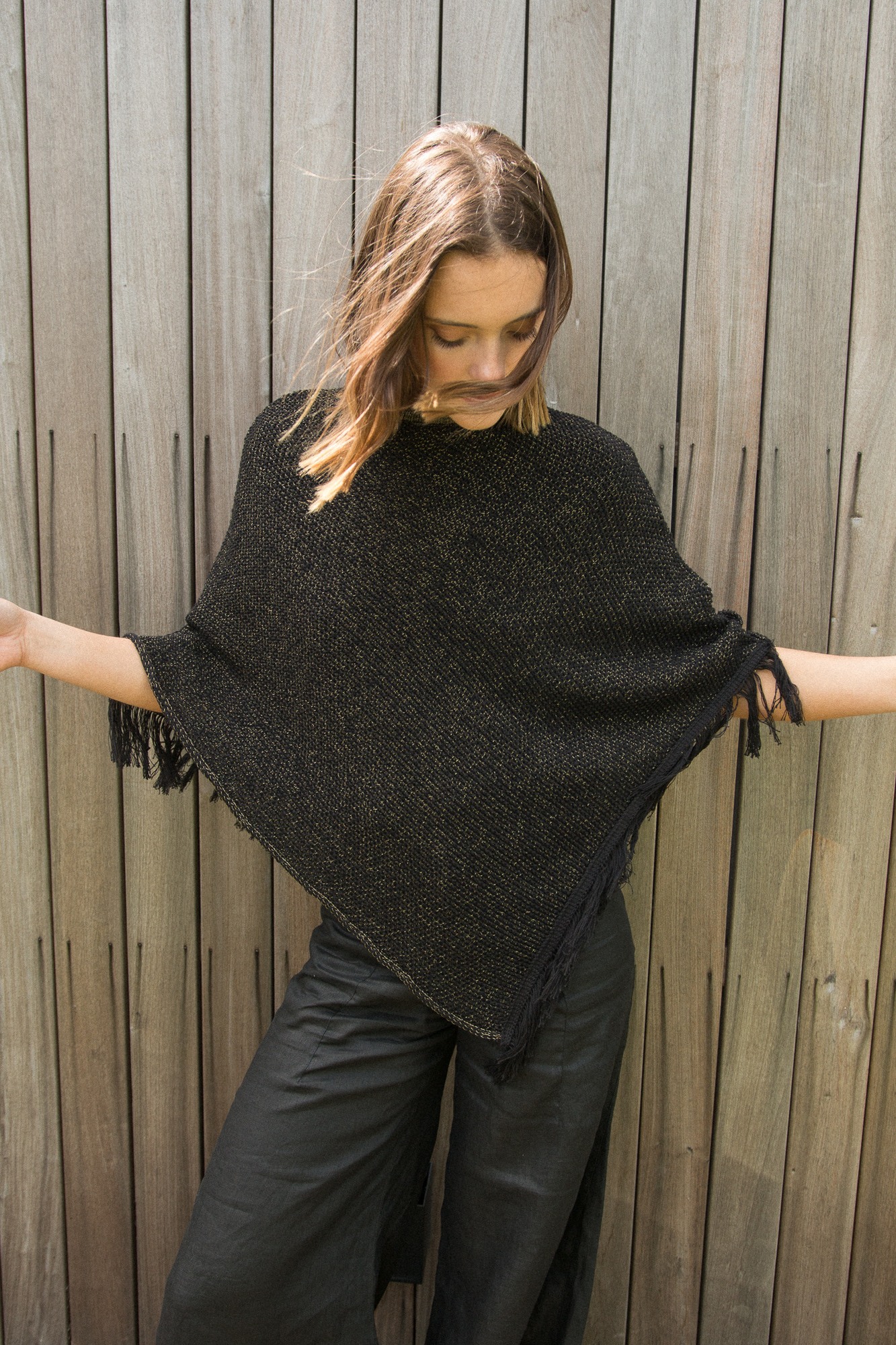 Poncho tejido en hilo de algodón con lurex. El rojo no tiener brillo.
