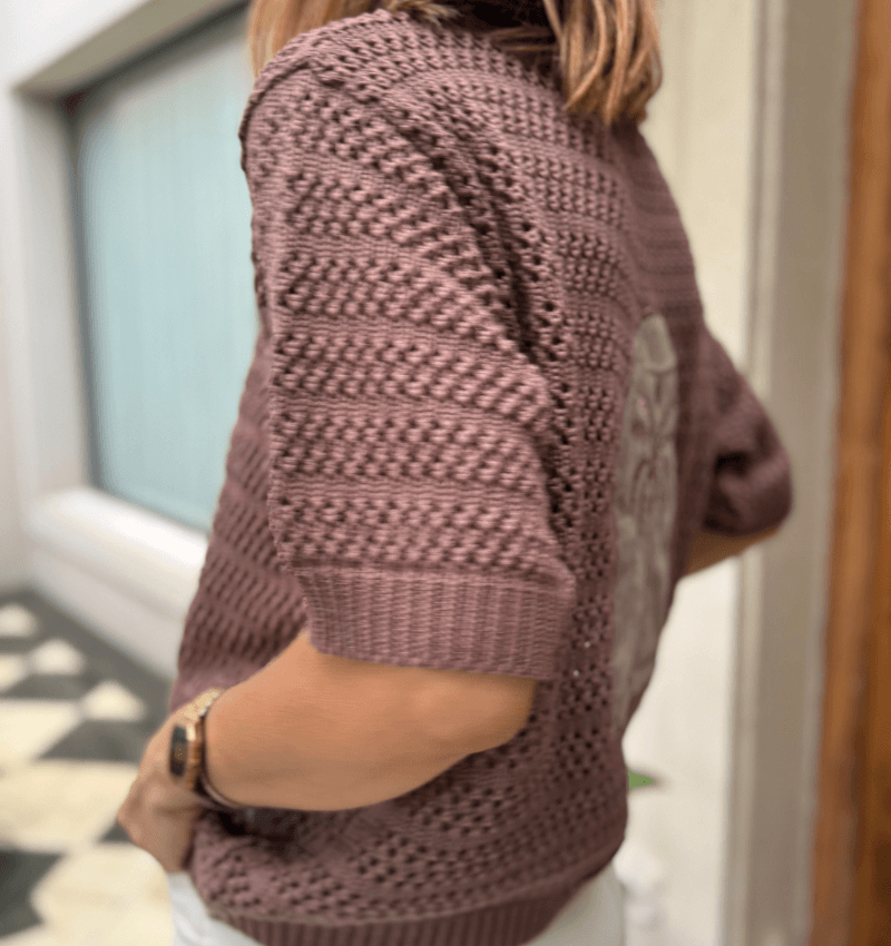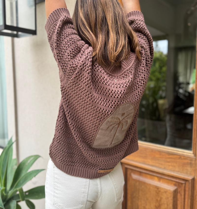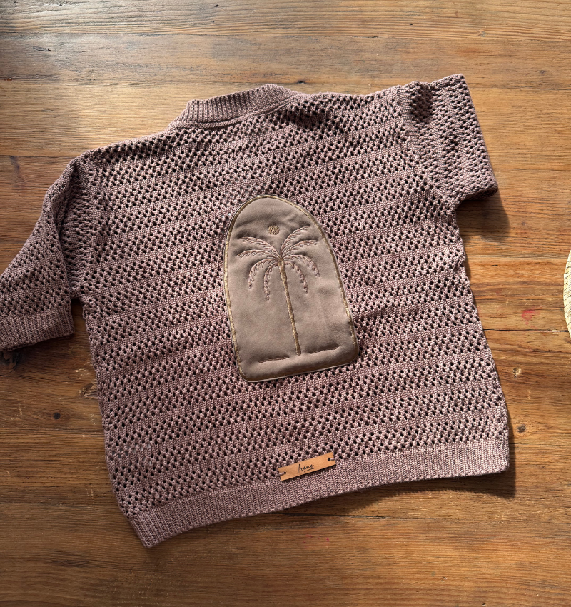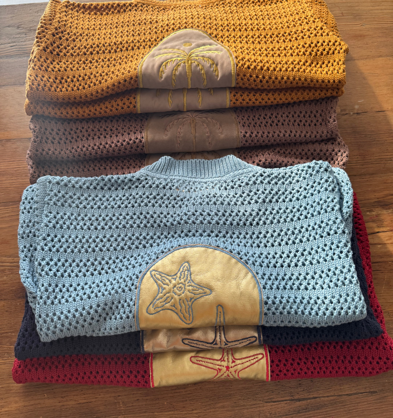 Forma parte de la cápsula de Sacos Arena intervenidos con apliques de cuero bordado.